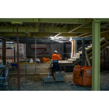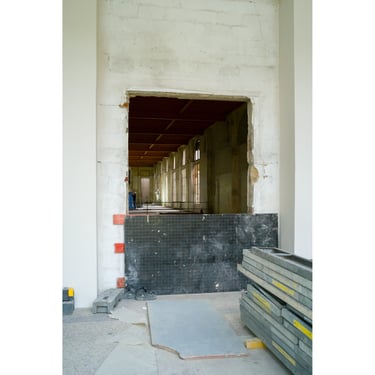 Les images issues de la documentation du chantier sont une matière première précieuse. Ce sont des portraits contextuels, des détails, des prises de vue architecturales, en couleur mais aussi en noir et blanc à travers un matériel photo spécifiquement dévolu à cet usage. Ces images seront "la mémoire du lieu" et offriront l'opportunité de devenir des objets tangibles.