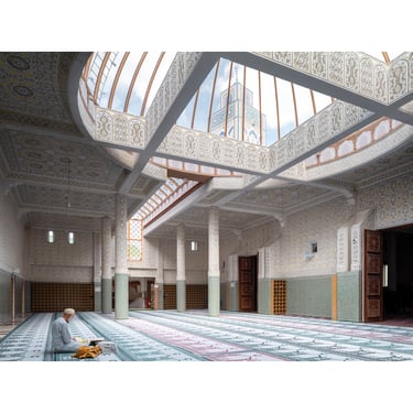 Autre lieu de culte présent sur la ville, la Mosquée : construite entre 1984 et 1995 par l'architecte Marc Henry-Baudot, la mosquée d'Évry est l'une des plus grandes de France et se distingue par son minaret de 25 mètres de haut. Sa conception sobre et élégante utilise des façades lisses agrémentées d'arcades sculpturales. L'inspiration mauresque se retrouve dans le travail d'ornementation intérieur avec l'usage de stuc et de mosaïques.